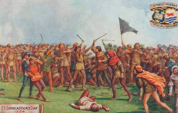 В 1354 году английский университетский городок Оксфорд захлестнули крупнейшие в истории студенческие беспорядки: в результате университет сгорел дотла, погибли 63 студента и профессора.
